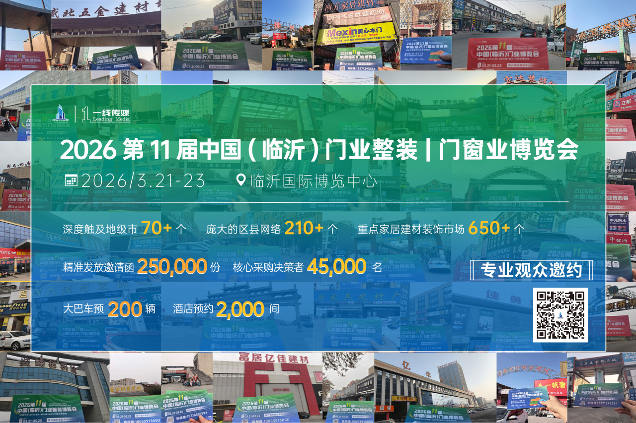 2026年3月21日-23日,2026第十一届中国(临沂)门业博览会将在临沂国际博览中心(双岭路)盛大举行。50000+㎡展览规模,1000家展商齐聚,为产业链上下游品牌提供集交流对话、新品展示、招商加盟等高效合作平台,打造山东木门窗行业开年第一展!